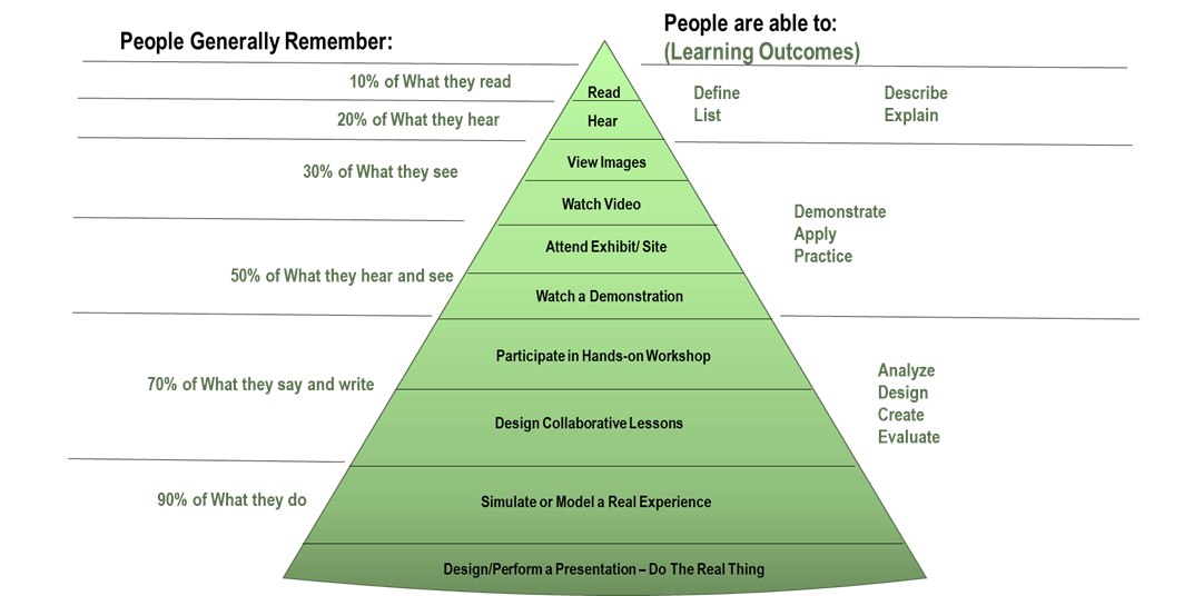 Little do we realise that everything shown is not the entire truth, and in some cases, hardly. Here are my reasons for being very careful with the visual medium. If I look at the Dale’s Cone, it explains a lot about the impression that a visual medium has on learning. Dale spoke of various modalities of assimilation of learning and defined the impact each had.