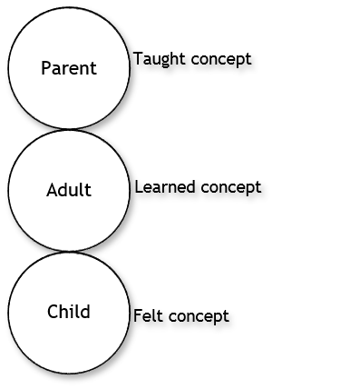 Transactional analysis (TA) by Eric Berne defines three ego states.  These ego states are present in all individuals, and are diagrammatically depicted through three circles lined vertically, touching at the circumference.